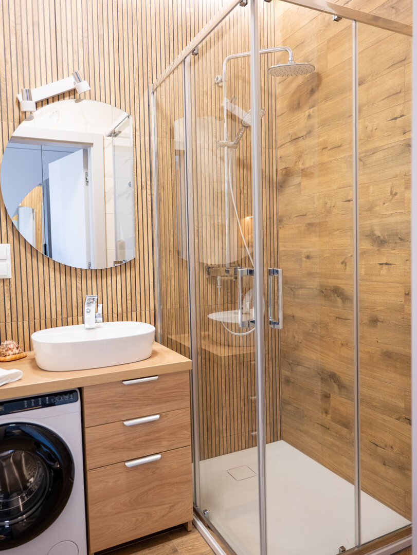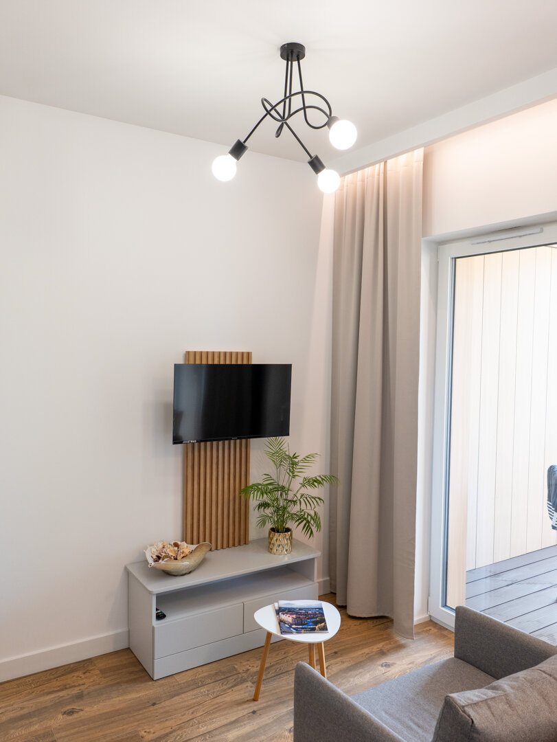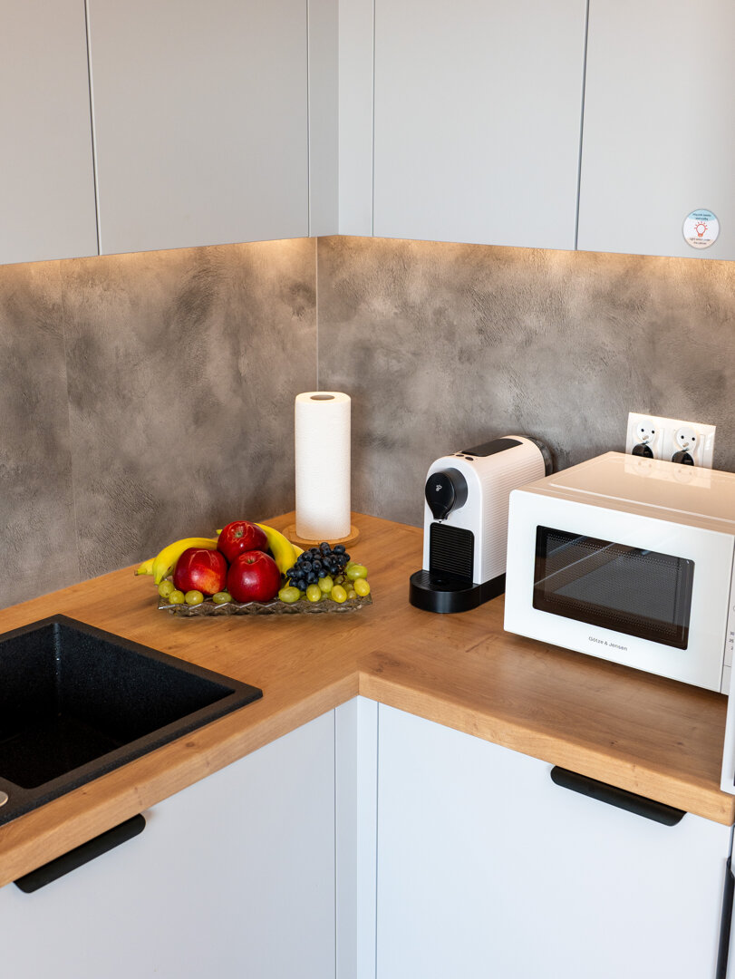Ważna informacja: Budynek został oddany do użytku w 2025 roku. Informujemy, że w sąsiednich apartamentach mogą wciąż trwać prace wykończeniowe. Przepraszamy za ewentualne niedogodności związane z hałasem.W przypadku Apartamentów w budynku Plaża41 klucze przekazujemy osobiście.Przestrzeń Zaprojektowana dla Ciebie Nasze studio na 2. piętrze to esencja funkcjonalności i stylu. Mimo kompaktowego charakteru, wnętrze zostało zaplanowane tak, aby zapewnić wygodę nawet przy dłuższych pobytach: Strefa Snu: Wysoki komfort wypoczynku gwarantuje duże łóżko (160x200) z wygodnym materacem. Dodatkowo w pokoju znajduje się rozkładany fotel, który może służyć jako dodatkowe miejsce do snu. Kuchnia: Aneks kuchenny został wyposażony w sprzęty: lodówkę, zmywarkę, mikrofalówkę oraz ekspres do kawy na kapsułki Nespresso. Łazienka i Udogodnienia: Nowoczesna łazienka z prysznicem wyposażona jest również w pralkę, co czyni nasze studio idealnym wyborem na dłuższe, nadmorskie wakacje. Twój Prywatny Taras Słoneczny Jednym z największych atutów apartamentu jest duży, słoneczny taras. To Twoja prywatna strefa relaksu na świeżym powietrzu – idealne miejsce na lekturę książki, słoneczne kąpiele czy wieczorny odpoczynek po dniu spędzonym na plaży. Lokalizacja, Która Ułatwia Życie Plaża 41 to miejsce, gdzie wszystko masz pod ręką: 100 metrów do plaży: Wystarczy krótki spacer, by stanąć na piaszczystym brzegu Bałtyku. Zakupy w zasięgu ręki: W tym samym budynku znajdziesz sklepy Dino oraz Rossmann. Natura i Rekreacja: Obiekt położony jest tuż obok malowniczego Parku Brzeźnieńskiego oraz rozległego Parku Reagana – idealnych miejsc na jogging, rower czy rodzinny spacer. Kierunek Stare Miasto: Bliskość pętli tramwajowej zapewnia szybkie i bezpośrednie połączenie z historycznym centrum Gdańska.